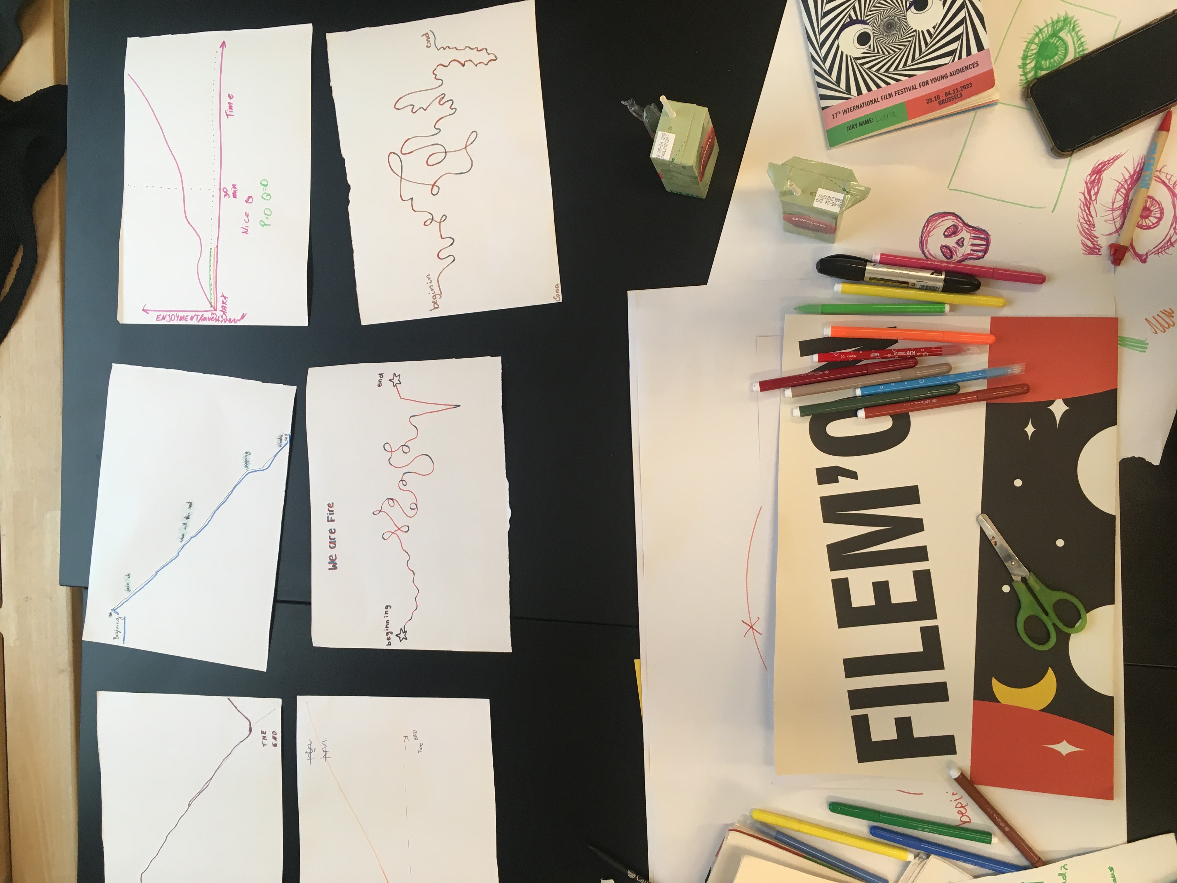 Working as main coordinator of the international teenage jury at Filem’On Film Festival in Brussels (2023-24 edition) and in charge of the creative film-analysis workshops. We also did a collaboration with KUNSTENFESTIVALDESARTS, where I organised a creative atelier for children in which we created imaginary creatures and narratives following the motto of the performance “MULTIPLE BAD THINGS” by Back to Back Theatre at Théâtre National Wallonie-Bruxelles.